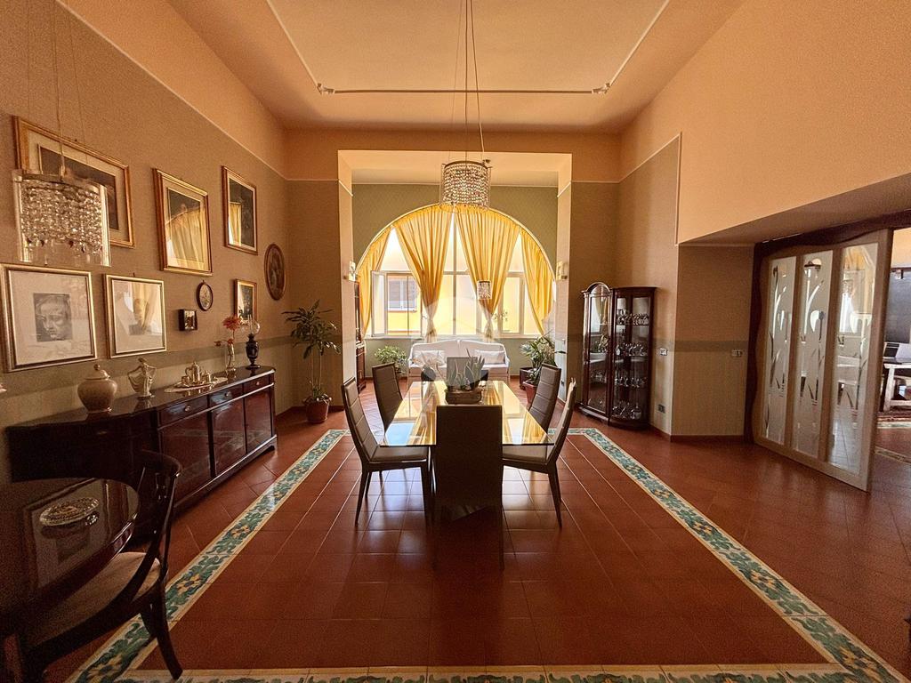 Nel pieno centro cittadino, in via Roma, proponiamo in vendita elegante appartamento di circa 200 mq, situato al primo piano di un fabbricato d'epoca signorile, caratterizzato da fascino, raffinatezza e dettagli architettonici di pregio. L'immobile si distingue per gli ambienti ampi e luminosi e per la distribuzione funzionale e armoniosa. L'ingresso conduce a un'accogliente zona giorno composta da ampio soggiorno-cucina e un maestoso salone, ideale per momenti di rappresentanza e convivialità. La zona notte offre tre spaziose camere da letto, di cui una con bagno privato, oltre a un secondo bagno principale. Completano la proprietà una comoda lavanderia, un pratico cucinotto e una cantinola. L'appartamento si presenta in ottimo stato manutentivo, pronto per essere abitato, e rappresenta la soluzione ideale per chi desidera vivere in un contesto esclusivo, senza rinunciare al comfort e alla centralità dei servizi. Soluzione di grande prestigio, perfetta sia come residenza di rappresentanza sia vome investimento di valore.